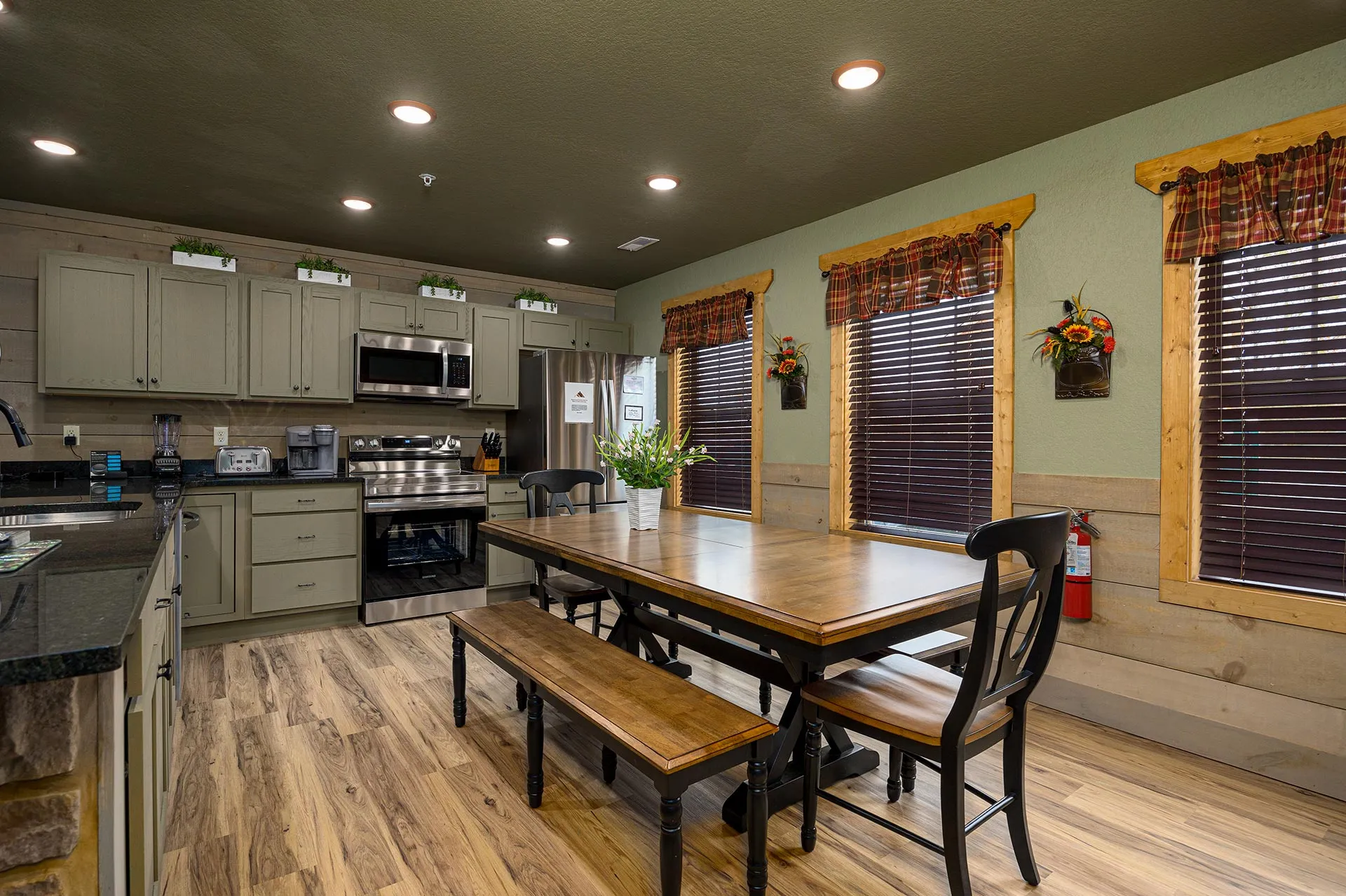 As one of the premier Gatlinburg vacation rentals, this newly built, 5-bedroom, 6-full bathroom, and 2-half bathroom luxury cabin is designed for relaxation and entertainment. The game rooms are fully equipped with a multi-arcade game, pool table, air hockey, shuffleboard table, foosball, and card table, ensuring there’s never a dull moment. For ultimate comfort, enjoy a movie night in the home theater, take a dip in the private indoor swimming pool (set at 82 degrees), or unwind in the outdoor hot tub and sauna. Cozy up by one of the fireplaces after a day of adventure in the Smoky Mountains.